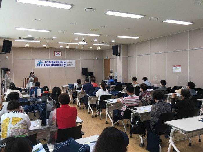 중산동 찾아가는복지팀은 행복파랑새단의 활동을 강화해 위기가구의 심각한 위기 발생을 예방하고 지역주민 네트워크로 촘촘한 사회안전망을 구축하기 위해 이번 교육을 실시했다.