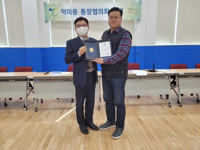 [부자동네타임즈 김인수기자] 고양특례시 덕이동 행정복지센터는 지난 10일 ▲통장활동에 대한 경기도지사상, 고양시장상 ▲적십자 회비 모금에 대한 대한적십자사 경기도지사상 등의 표창장 전달식을 가졌다.