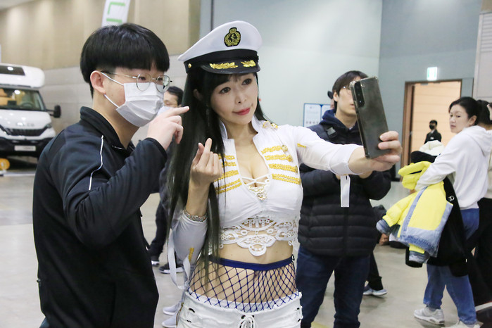 [사진설명] 조은하 레이싱모델이 찾아오신 시민들에게 바쁜 일정에도 기념촬영 해주고 있다.