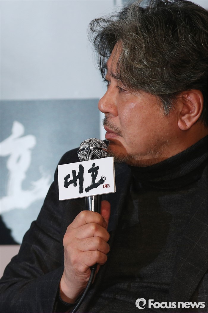 배우 최민식이 8일 오후 서울 광진구 롯데시네마 건대입구에서 열린 '대호' 언론시사회 이후 이어진 기자간담회에서 영화 '대호'를 처음 본 소감을 전했다.