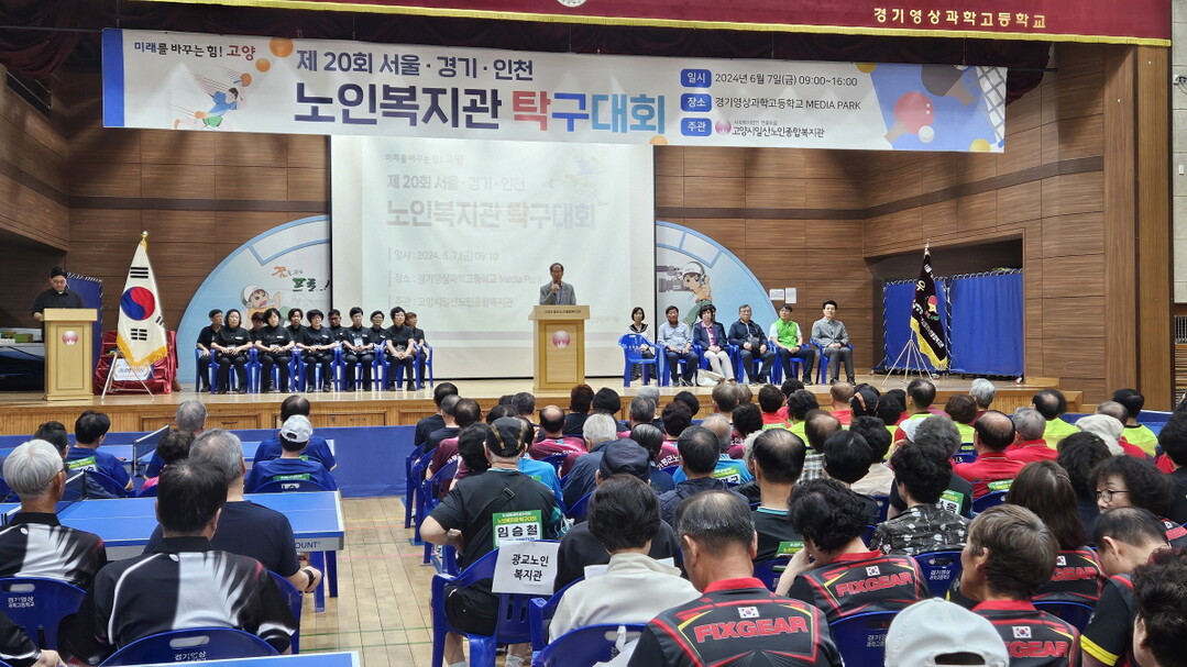 [부자동네타임즈 = 김인수 기자] 고양시일산노인종합복지관(관장 장기욱) 지난 7일 경기영상과학고등학교 Media Park에서 서울, 경기, 인천 소재의 26개 노인복지관의 195명의 선수와 응원단 및 인솔자 총 300여명이 참여한 가운데‘제20회 서울·경기·인천 노인복지관 탁구대회’를 개최했다.