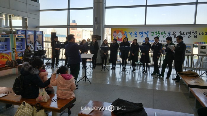 [부자동네타임즈 서소민 기자]경산시립합창단(단장 부시장 김호진)은 설 명절 고향을 찾는 귀성객들을 환영하기 위하여 26일 경산역 2층 대합실에서 음악회를 개최했다.