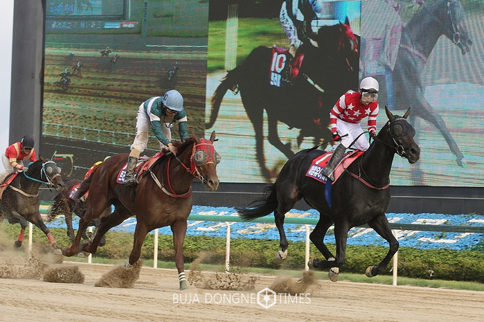 [부자동네타임즈 이채봉 기자]상반기 그랑프리로 평가받는 제13회 부산광역시장배에서 ‘아임유어파더(3세 수말, 이원태 마주)’가 이변을 일으키며 우승, 한국경마 차세대 강자로 급부상했다.