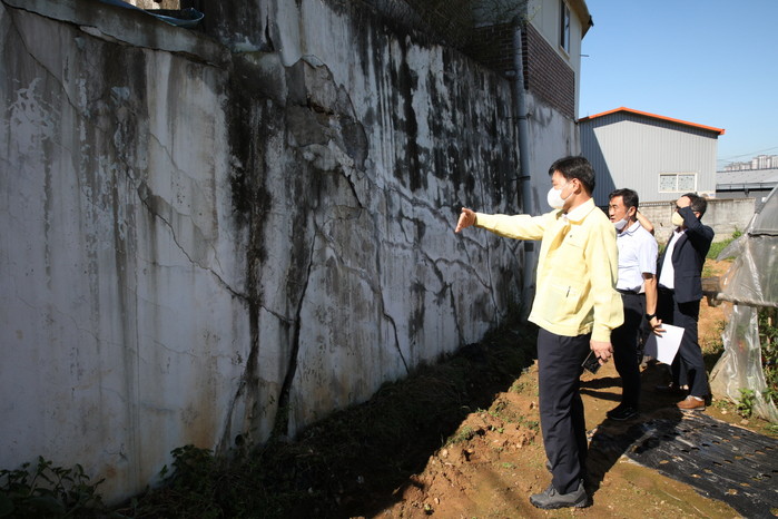 태풍‘힌남노’에 대비하여 덕이동 1111-7번지 일대 단독주택 3동은 건축물 기초 부분의 심한 옹벽 균열로 콘크리트 분리이탈, 철근 노출, 건축물 외벽 균열 등 입주민들의 안전사고 우려가 크므로 각 건축물 소유자에게 보강 조치를 하도록 요청했다. 또한 현장 상황을 시청에 보고하고 더불어 경기도에 긴급하게 특별 안전 점검을 요청한 상태이다.