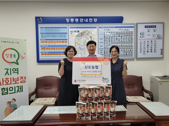 홍성규 신도농협 조합장은 “작은 나눔이지만 창릉동 어르신들의 기력 회복에 도움이 되기를 바라며, 지역을 대표하는 금융기관으로서 앞으로도 지역사회를 위한 지원을 아끼지 않겠다.”고 말했다.