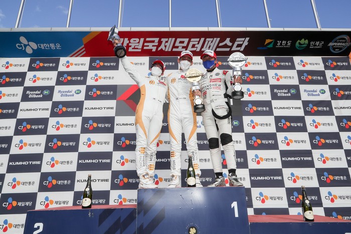 [사진설명] 2021 강원 국제 모터페스타, ‘금호 GT 클래스’에서 김학겸, 김민상이 원투 피니시로 함께 포디움에 올랐다.