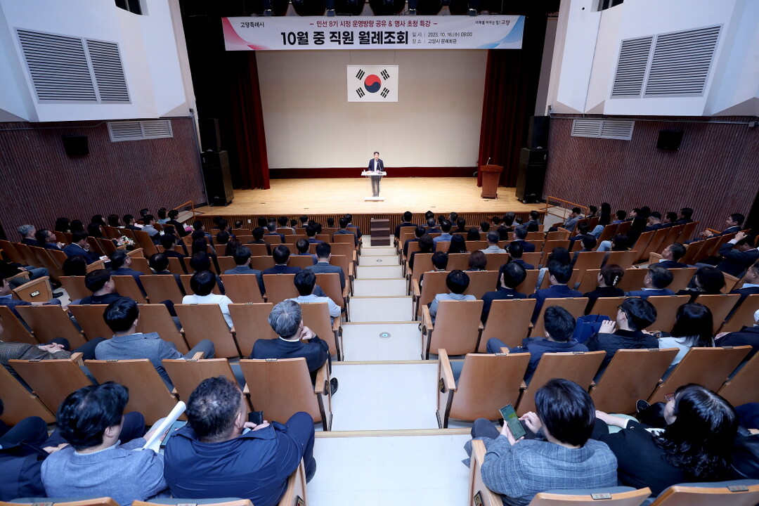 [부자동네타임즈 = 김인수 기자] 지난 18일 고양특례시는 고양시 문예회관에서 이동환 고양특례시장, 간부 공무원, 직원 등 300여명이 참석한 가운데 10월 월례조회를 개최했다.