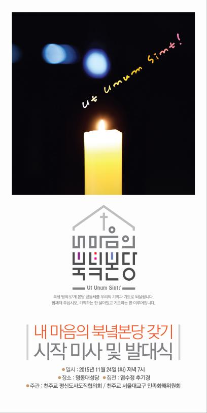 천주교 서울대교구는 24일 오후 7시부터 명동대성당에서 ‘내 마음의 북녘 본당 갖기’라는 주제로 시작미사를 봉헌하고 코스트홀에서 추진위원회 발대식을 진행하고 있다.