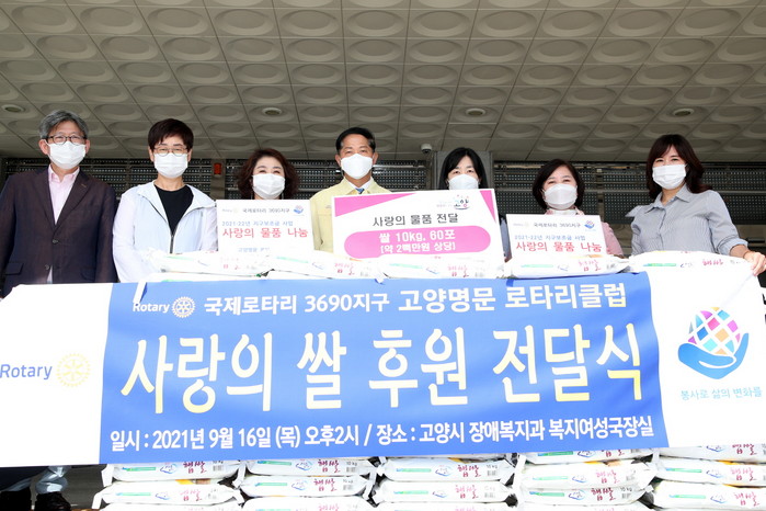 [부자동네타임즈 김인수기자] 고양시는 지난 16일 국제로타리 3690지구 고양명문 로타리클럽(회장 이정선)이 추석명절을 맞아 쌀을 기부해 전달식을 진행했다.