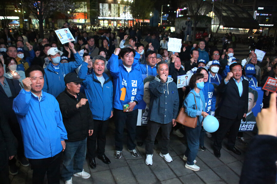 마이크를 잡은 김성회 후보는 화정역을 찾은 시민들에게 "이번 총선은 일개 후보의 싸움이 아니라 윤석열 정권과 싸움"이라며 "여러분에겐 강력한 무기, 투표권이 있다. 심판의 회초리를 들어야 한다."고 강력히 호소했다.