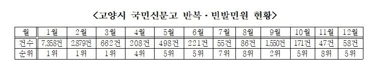 [부자동네타임즈 = 김인수 기자] 고양특례시는 지난해에 이어 부서 접수 민원 통계 분석을 통해 반복·빈발민원 해결을 위해 부단히 노력한 결과, 2023년도 상반기보다 하반기 민원이 59.4%가 감소했다고 밝혔다.