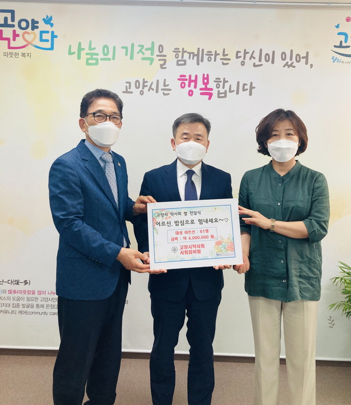 고양시 약사회는 고양시와 2019년 3월 의료사각지대 및 위기가정 발굴·지원을 위한 업무협약(MOU)을 체결해 의료취약계층을 위한 후원을 해왔다. 작년에도 코로나19 방역 보건의료인, 취약계층 아동을 위해 1,500만 원 상당의 영양제와 성금 500만원을 후원했다.