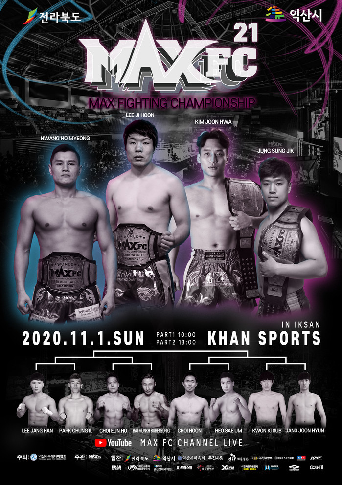 한편 ‘칸스포츠 MAXFC 21’대회는 2개의 타이틀 매치와 새롭게 도입된 원데이토너먼트 경기로 올해 첫 넘버링을 앞두고있다. 코로나19로 인해 무관중으로 진행되며 MAXFC 유튜브 채널에서 실황 중계된다.