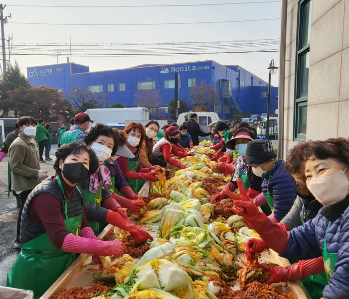 장항1동 새마을부녀회(회장 김영옥)의 주관으로 직능단체 회원 및 자원봉사자 50여명과 행정복지센터 직원들이 함께 모여 김장김치 300여 포기를 담갔으며, 소외계층 70여 가구에게 전달될 예정이다.
