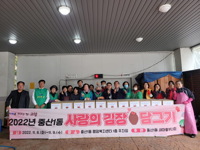 [부자동네타임즈 김인수기자] 고양특례시 일산동구 중산1동 행정복지센터(동장 지창섭)는 11월 8일부터 9일까지 새마을부녀회, 통장협의회, 지역사회보장협의체 등 직능단체를 비롯하여 자원봉사자 30여명이 참여하여 2022년 “사랑의 김장김치” 나눔 행사를 진행하였다고 밝혔다.