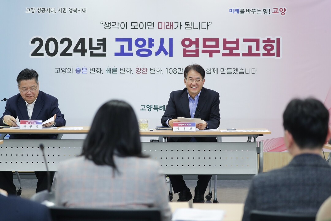 분야별로 직원들이 모여 2024년 한 해의 업무계획을 고민하는 ‘고양시 업무보고’에서는 신재생에너지, 미세먼지 저감 등 탄소중립도시 실현을 위한 열띤 토론이 이어졌다.