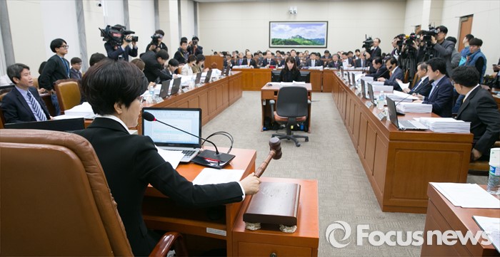 | △ 지난 16일 오전 서울 여의도 국회 환경노동위원회 전체회의장에서 김영주 위원장이 의사봉을 두드리고 있다. <사진제공=포커스뉴스> |