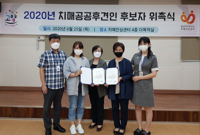 [부자동네타임즈 김인수기자] 고양시 일산서구보건소 치매안심센터(이하 센터)는 지난 25일 치매공공후견 교육을 수료한 치매공공후견인 후보자 2명에게 위촉장을 수여하고 사업 활성화 방안을 논의했다고 밝혔다.