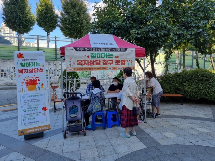 지난 8일(수) 일산1동 맞춤형복지팀장, 지역사회보장협의체 위원 및 일산종합복지관 직원과 함께 지역 내 취약계층이 많이 거주하는 일산1동 일신건영 휴먼빌 아파트 후문입구 옆 공터에서 찾아가는 복지상담소를 설치하고 아파트 주변 주민들을 대상으로 복지사각지대 발굴, 상담 및 맞춤형복지 정보를 제공했다.