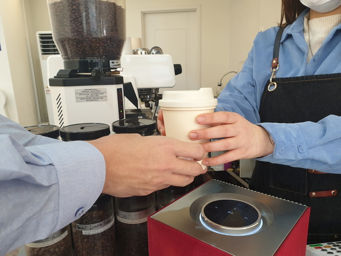 [사진설명] 카페에서 다회용컵을 이용하는 모습.
