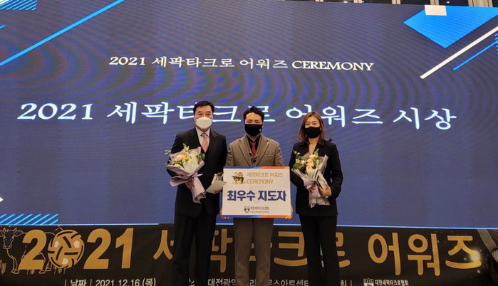 [부자동네타임즈 김인수기자] 고양시청 소속 이기훈 감독이 지난 16일 대전 라도무스 아트센터에서 열린 ‘2021 세팍타크로 어워즈’에서 최우수 지도자상을 수상했다.