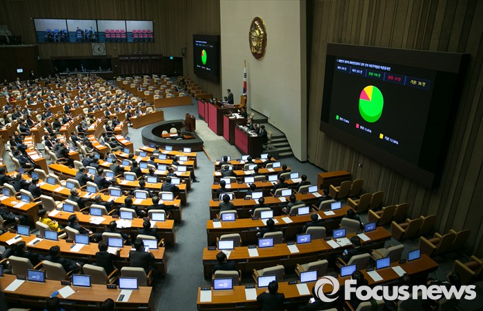 | △ 30일 오후 서울 여의도 국회에서 열린 337회 국회(정기회) 12차 본회의에서 대한민국 정부와 중화인민공화국 정부 간의 자유무역협정 비준동의안(한중 FTA 비준동의안)이 재석 265중 찬성 196인, 반대 33인, 기권 36인으로 통과되고 있다. <사진제공=포커스뉴스> |