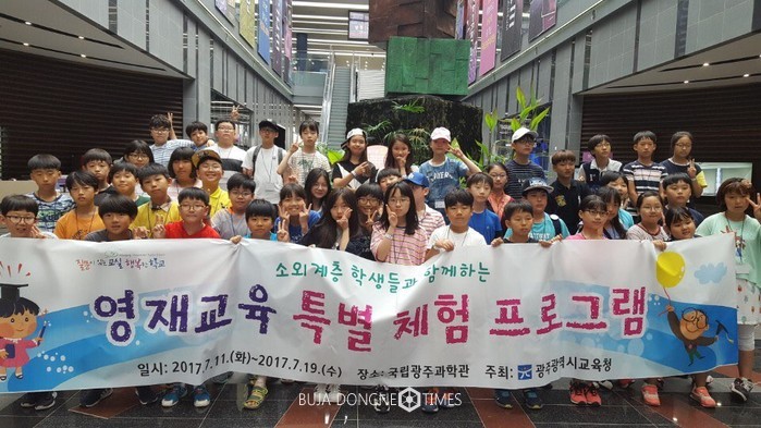 11일 광주광역시교육청(교육감 장휘국)에 따르면 시교육청은 6월 중순부터 말일까지 시교육청 산하 영재교육기관에서 수강하는소외계층(기초수급, 차상위, 사회적 배려 대상자) 학생들과 생활환경이 어려운 일반 학생 중 담임교사 추천을 받은 학생들을 대상으로 '영재교육 특별 체험 프로그램' 참여자를 모집한 바 있다.