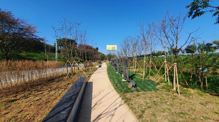 이에 따라 시는 2020년 특별교부세 5억 원과 2021년 본예산 3.6억 원을 확보해 지난 6월부터 이 일대의 지장물을 철거하고 이용자 특성에 맞는 휴게 및 산책 공간을 조성했다. 그 결과 휴게광장, 전망데크, 산책로, 정자, 그네의자를 갖춘 11,000㎡ 규모의 도심숲이 조성됐다.