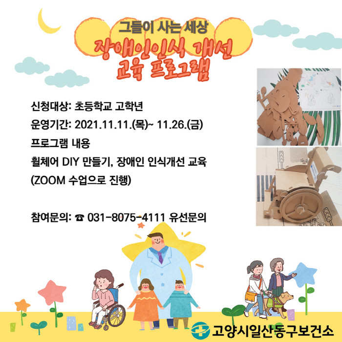 프로그램은 두 차례의 교육과 휠체어 DIY 만들기로 이루어진다. 휠체어 DIY 만들기는 아이들이 골판지로 직접 휠체어 모형을 만들고 색칠하면서 자연스럽게 장애와 보조기기에 대해 이해할 수 있는 기회를 제공한다.
