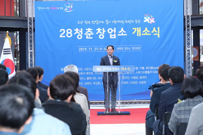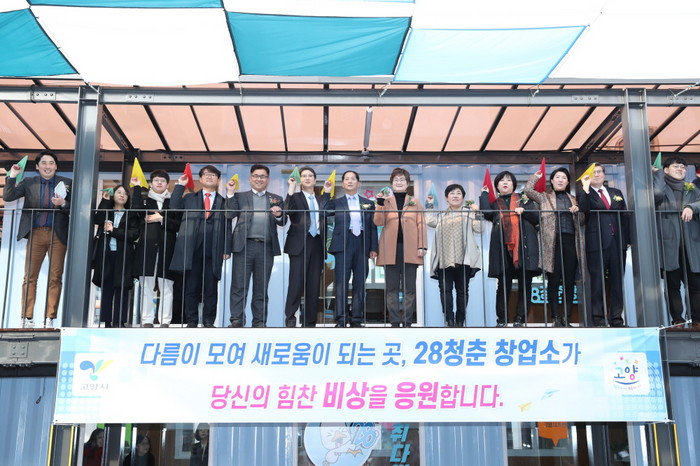 [부자동네타임즈 김인수기자] 고양시(시장 이재준)는 지난 21일 오후 2시, 참신한 아이디어를 가진 청년의 창업을 지원하기 위한 창업공간인 ‘28청춘 창업소’의 개소식을 개최했다. 이 날 개소식에는 고양시장, 고양시의회, 경기도의회 의원을 비롯하여 한국항공대학교 총장, 중부대학교 부총장 등이 참석했다. 또한 청년의 창업공간 마련을 축하하며 60여 명의 청년도 개소식에 함께 했다.