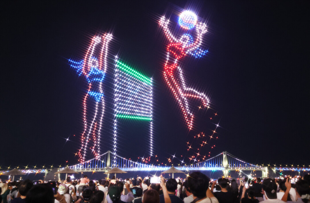 '2025 부산 광안리 국제 여자 비치발리볼 대회' 주제 드론쇼