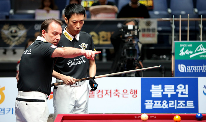 에스와이는 이어진 하나카드와의 경기서 첫 세트 다니엘 산체스(스페인)-박인수가 응우옌 꾸억 응우옌(베트남)-신정주를 3이닝만에 11:3으로 승리하면서 기분 좋게 출발했으나 2~4세트를 나란히 내주면서 패배 직전까지 내몰렸다. 5세트와 6세트서 박인수와 한지은이 각각 응우옌 꾸억 응우옌에 11:6(7이닝), 김가영에 9:3(4이닝)으로 승리하며 3:3 동률까지 이뤘으나 7세트서 황득희가 신정주에 1:11(4이닝)로 패배하며 세트스코어 3:4 승점1확보에 그쳤다.