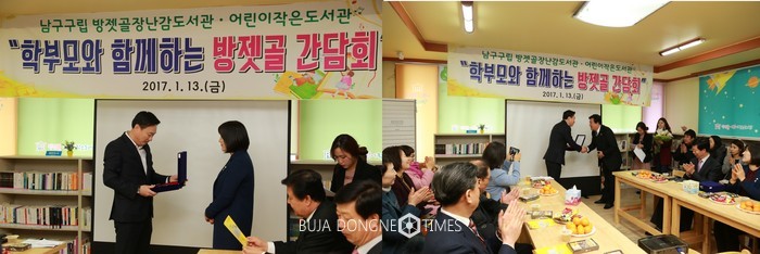 광주 남구의회 조기주 의원과 배진하 의원은 방젯골장난감도서관·어린이작은도서관 발전에 기여한 공로를 인정받아 남구 구립 방젯골장난감도서관·어린이작은도서관(관장 : 채선필)으로부터 감사패를 수상하는 영예를 안았다.