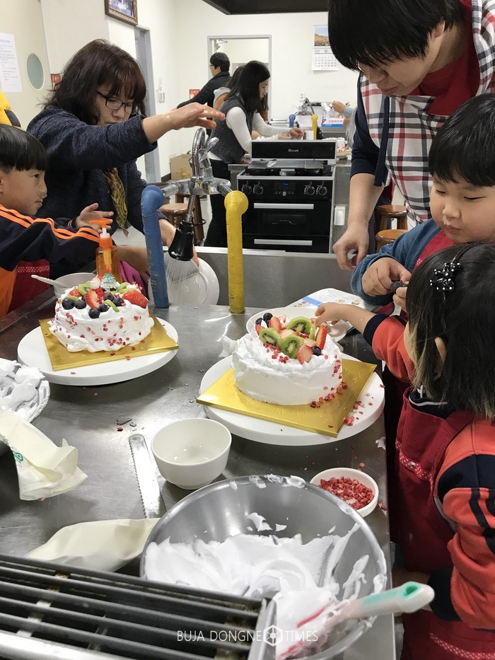 이날 아동들은 직접 생크림과 생과일로 케이크를 장식하고 크리스마스 장식물을 덧붙이며 우리 가족만의 단 하나뿐인 케이크를 만든다는 생각에 행복한 얼굴이었다.