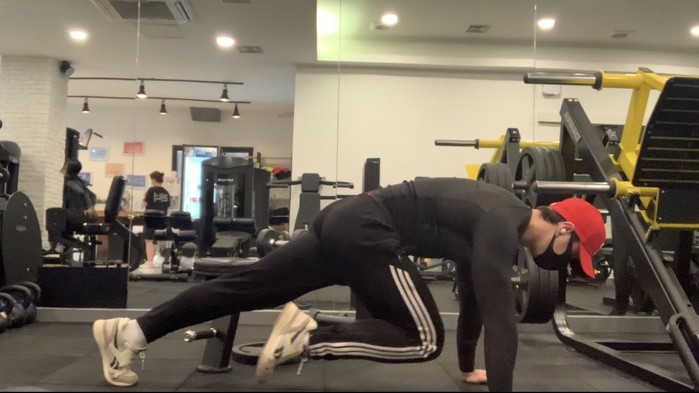 3,반대편도 동일. 실행-20초 버피, 10초 휴식, 총8회 실시.