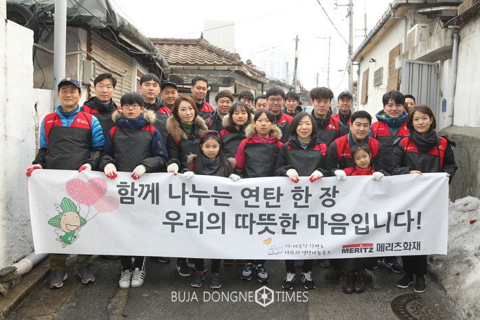 [부자동네타임즈 이현재 기자]메리츠화재(대표이사 김용범)가 23일 노원구 상계동 일대에서 ‘사랑의 연탄 나눔’ 봉사활동을 진행했다.
