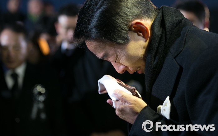 | △ 故 김영삼 전 대통령의 안장식이 열린 26일 오후 서울 동작구 국립현충원에서 아들 김현철씨가 하관을 지켜보며 오열하고 있다. 사진공동취재단 photo@focus.kr |