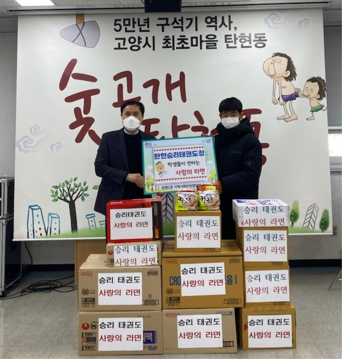 승리태권도는 일산서구 현중로 10(탄현마을 16단지)에 위치해 있으며 태권도장 학생들의 나눔 교육을 위해 2019년에 ‘사랑의 라면’기부를 시작해 올해에도 기부에 동참했다.