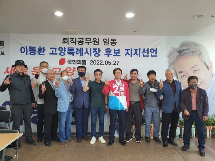 이날 이동환 후보 지지선언에는 이태윤 전 고양시 도시주택국장을 비롯해 김운용 전 고양시 푸른도시사업소장, 신승일 전 고양시 시민안전주택국장, 황경호 전 고양시 도시계획과장(4급직) 등 전직 공무원 25명이 참여했다.