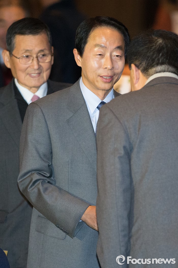| △ 10일 오후 서울 영등포구 63빌딩에서 김대중평화센터 주최로 열린 '고 김대중 대통령 노벨평화상 수상 15주년 기념식'에 고 김영삼 전 대통령 차남인 김현철씨가 참석자와 인사를 나누고 있다. <사진제공=포커스뉴스> |