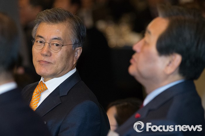 | △ 10일 오후 서울 영등포구 63빌딩에서 김대중평화센터 주최로 열린 '고 김대중 대통령 노벨평화상 수상 15주년 기념식'에 김무성(오른쪽) 새누리당 대표와 문재인 새정치민주연합 대표가 나란히 앉아 있다. <사진제공=포커스뉴스> |