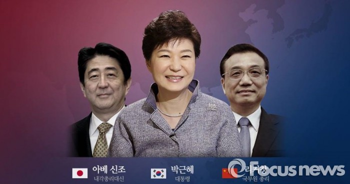 | △ 한일중 정상회의가 1일 오후 2시 청와대 영빈관에서 시작돼 90분 가량 펼쳐졌다. 좌측부터 아베 신조 일본 총리, 박근혜 대통령, 리커창 중국 총리.<사진출처=청와대> |
