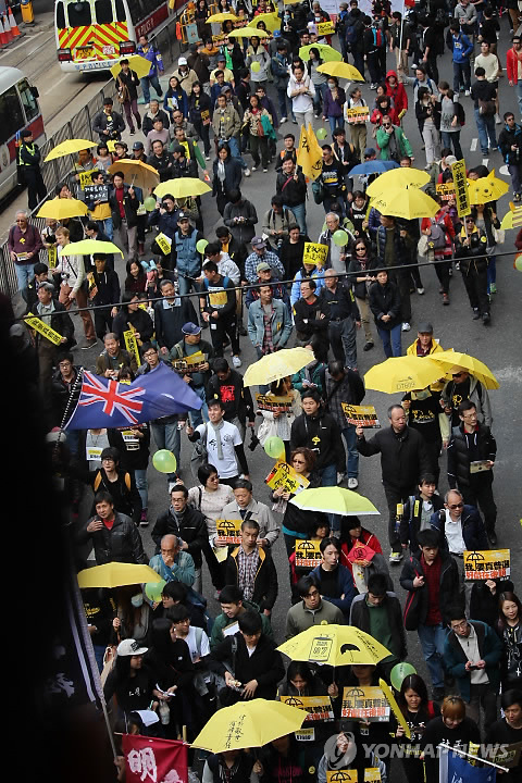 홍콩 시민과 학생들은 2017년 홍콩 행정장관 선거 입후보자의 자격을 제한한 중국 전국인민대표대회(전인대)의 선거안에 반대해 작년 9월 28일부터 '우산혁명'으로 불린 도심 시위를 벌이다가 12월 15일 경찰의 강제 진압으로 해산했다.