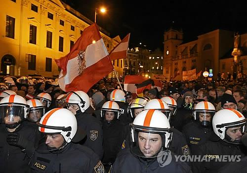 (빈·드레스덴 AP·dpa=연합뉴스) 오스트리아의 수도 빈에서 2일(현지시간) 처음으로 반 이슬람 시위가 벌어졌다.