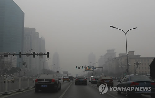 | △ 대기상태가 최악인 중국 10대 도시에 포함된 중국의 수도 베이징(北京) 중심가 모습. |