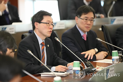 | △ 윤종록 미래부 차관, 정보보호 토론회 인사말 (서울=연합뉴스) 3일 서울 중구 포스트타워에서 열린 '사이버안심 국가 실현을 위한 정보보호 대토론회'에서 윤종록 미래창조과학부 제2차관(왼쪽)이 인사말을 하고 있다. 오른쪽은 임종인 청와대 안보특보. (미래창조과학부 제공) |