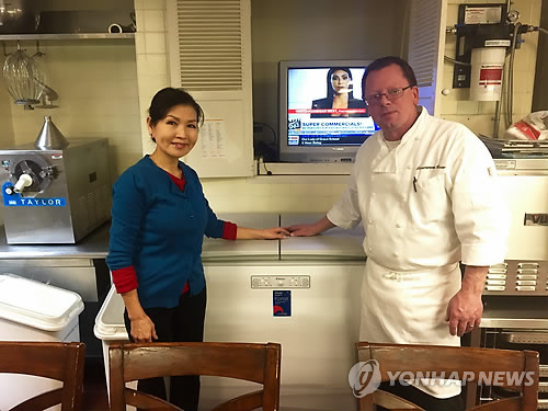 | △ 미국 메릴랜드 주지사 관저에 '김치냉장고' (워싱턴=연합뉴스) 노효동 특파원 = 지난달 21일(현지시간) 취임한 래리 호건 미국 메릴랜드 주지사 관저에 사상 처음으로 김치냉장고가 입성했다. 관저 주방에 놓인 김치냉장고 앞에서 주지사 부인으로 한국계 첫 퍼스트레이디인 유미 호건 여사와 주방장이 사진촬영에 응하고 있는 모습. |
