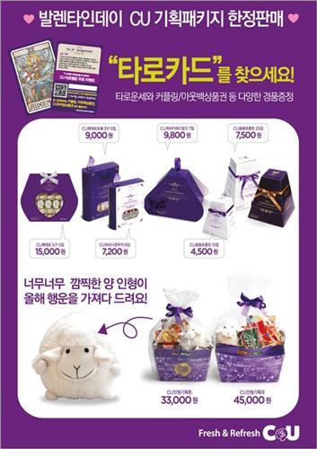 CU 타로 초콜릿은 페레로로쉐, 허쉬 등 고객이 선호하는 초콜릿만을 선별해 패키지로 구성한 상품이다. 상품 안에는 타로카드 행운권이 들어 있어, 행운권 뒷면에 있는 QR코드를 스캔하면 신년 맞이 타로점괘 등 운세를 볼 수 있다.