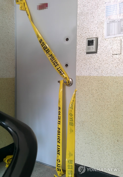 | △ 굳게 닫힌 아파트 대문 (포항=연합뉴스) 김준범 기자 = 4일 오전 경북 포항시 남구의 한 아파트 대문이 굳게 닫혀 있다. 경찰은 이 집에 살던 모녀가 3~4개월전 생활고를 비관해 스스로 목숨을 끊은 것으로 보고 수사하고 있다. 2015.2.4 psykims@yna.co.kr |