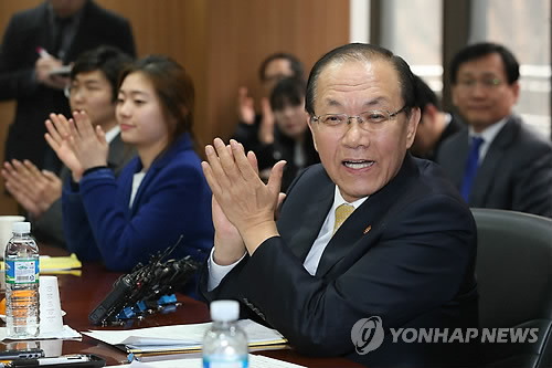 | △ 밝은 표정의 황우여 사회부총리 (서울=연합뉴스) 박지호 기자 = 황우여 사회부총리 겸 교육부 장관이 4일 오후 서울 서초구 우면동 한국교육개발원에서 대학생 대표들과 만나 학생들의 자기소개를 듣고 있다. |
